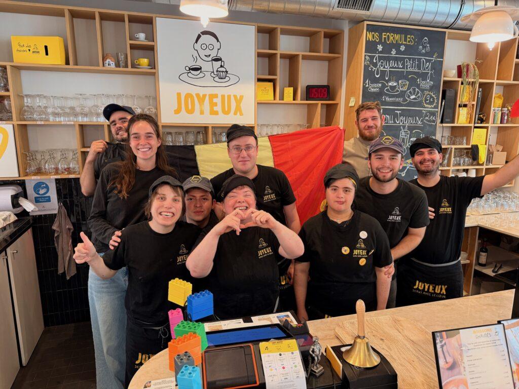 À Woluwe-Saint-Lambert (L’une des 19 commune de la capitale Belge) , une adresse singulière vient d’ouvrir ses portes en 2023 : Café Joyeux Belgium, au 32 rue Voot. Ce lieu résonne bien plus que d’un simple établissement accueillant — c’est un espace de solidarité et d’espoir, engagé dans l’inclusion professionnelle des personnes en situation de handicap mental et cognitif. Onze employés extraordinaires y travaillent en contrats ordinaires, avec sourire et fierté.