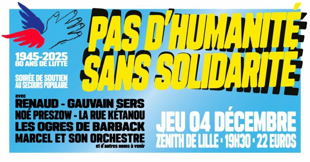 Renaud et plusieurs artistes au Zénith de Lille le 4 décembre pour célébrer les 80 ans du Secours Populaire