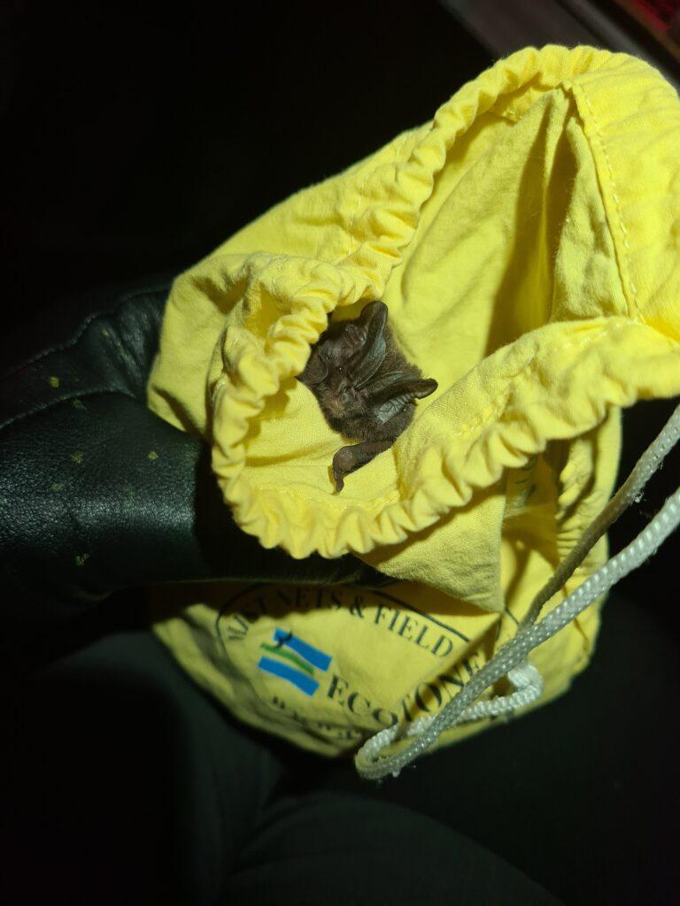 Tout a commencé avec une opération de capture nocturne menée par des volontaires et des spécialistes du parc, encadrée par le chiroptérologue Jonathan Demaret. « La barbastelle d’Europe est l’une des deux espèces prioritaires dans le cadre de nos recherches dans le Parc national », explique-t-il. Cette nuit-là, 16 chauves-souris appartenant à diverses espèces ont été capturées à l’aide de filets japonais, dont six barbastelles : deux femelles post-allaitantes et quatre mâles. Les femelles, en bonne santé, ont été équipées de balises radio afin de suivre leurs déplacements par télémétrie. Le lendemain, le signal a conduit les chercheurs vers un chêne mort aux écorces décollées, utilisé comme gîte. Ce repérage a permis de comptabiliser 22 individus quittant l’arbre au moment du crépuscule, malgré des conditions météorologiques peu favorables. Il s’agit donc d’une colonie bien installée, et non de simples individus isolés.